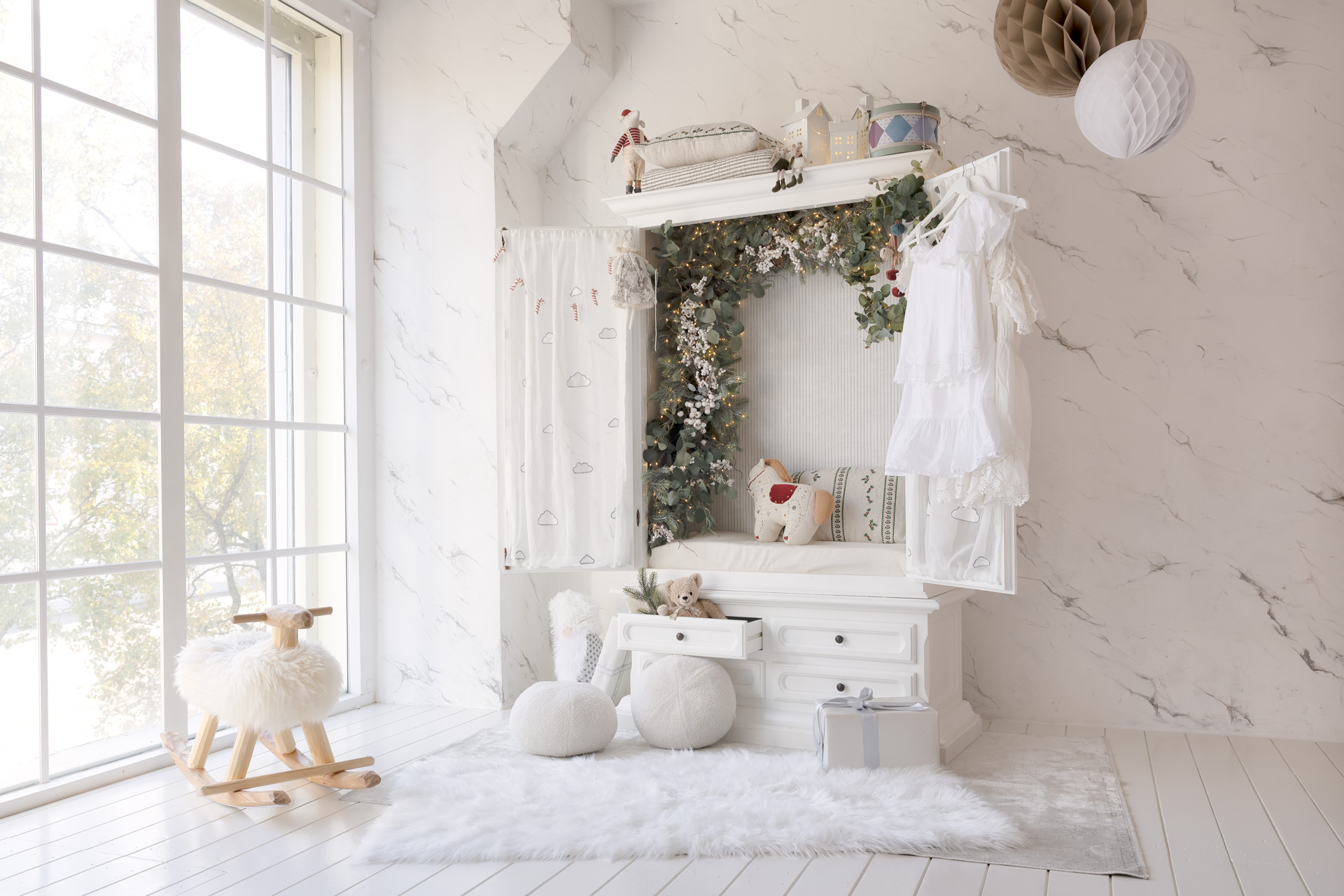 Art-deco saalis põimub ajatu elegants botaanilise küllusega – roheluse eri varjundid, heledad detailid ning looduslikud tekstuurid loovad maagilise jõulumeeleolu. Põhinurk mõjub helge ja õhulisena: rohelised oksad ja taimed sulanduvad heledate elementidega, luues tasakaalus ja piduliku atmosfääri. Lastenurgas ootab väikseid külalisi maagiline kapp – justkui värav isiklikku jõulufantaasiasse.