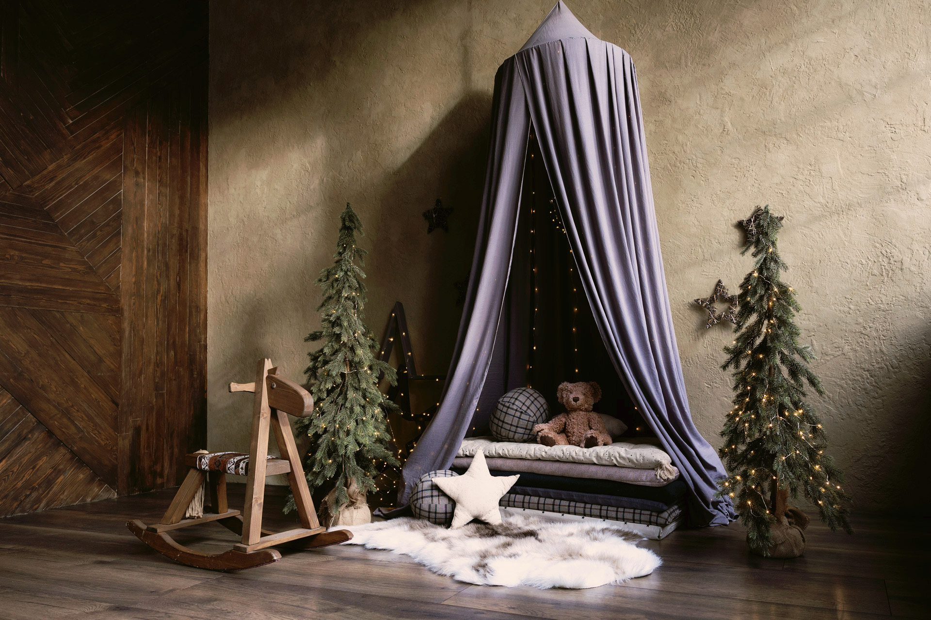Lofti saali jõulunurk on tumedates toonides, sügav ja lummav. Ajaloohõnguline kujundus, tartanmustrid, soojad toonid ja eriilmelised materjalid loovad ruumi, mis mõjub korraga nii väärikalt kui hubaselt. Siin sulandub rikkalik tekstuur ja soe atmosfäär ühtseks tervikuks. Ka väikestele külastajatele leidub siin oma hubane avastamisnurk, mis harmoneerub kogu saali meeleoluga.